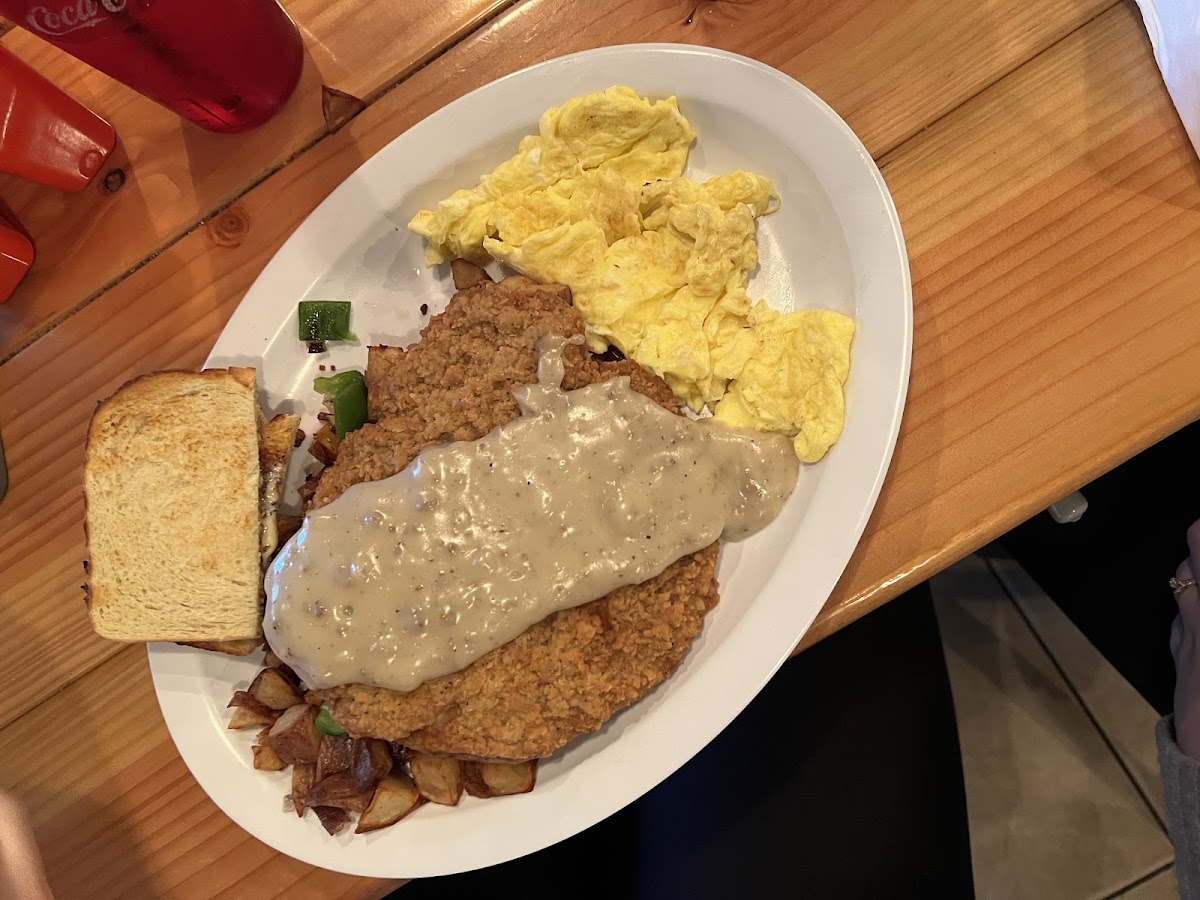Walking into Stupid Cow Cafe' feels like stepping into a cozy, local favorite. The interior is laid-back with a fun atmosphere that's perfect for a casual meal with friends or a quiet bite solo. The decor is playful and welcoming, with a mix of rustic touches and bright, cheerful colors. Whether you’re stopping by for breakfast, lunch, or dinner, the energy of the place immediately makes you feel like you’ve found a hidden gem.